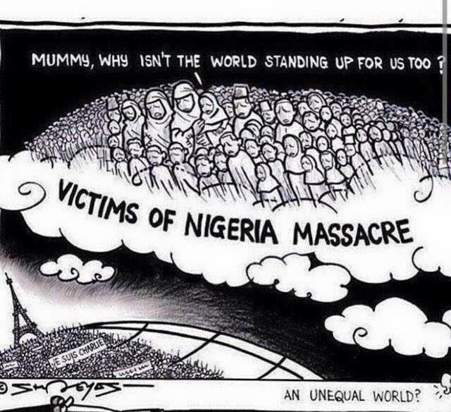 The massacre of 2000 Nigerians was done by the same terrorist group, Boko Haram, that kidnapped the 200 girls last April. People are frustrated that the 17 Parisians’ lives are getting almost all of the limelight over a massacre of 2000. People are stating race is definitely a factor in media outlets’ decision to cover one story over the other. Nigerians are also upset because their President has even addressed the Paris murders more than their own.