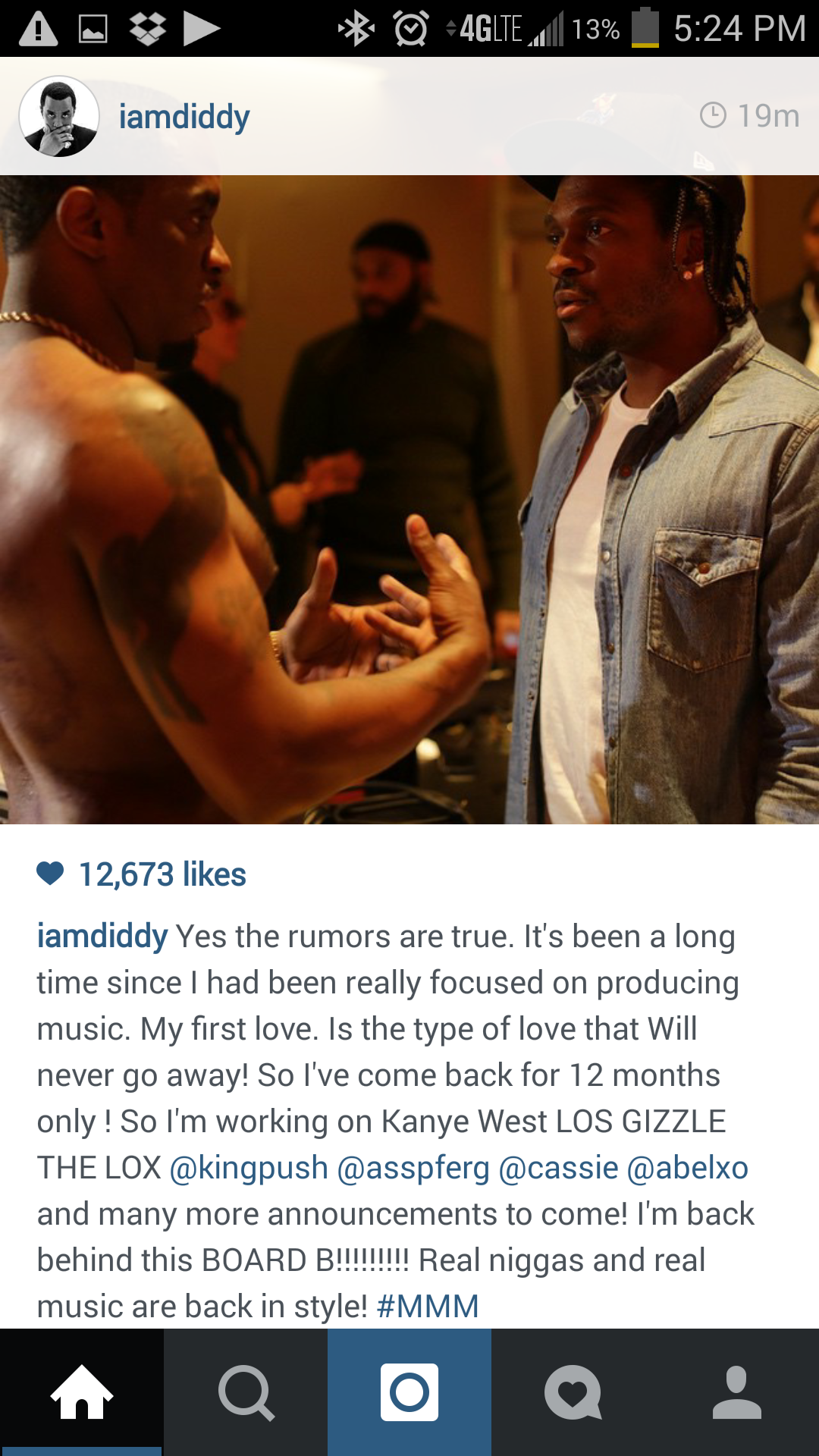 Diddy Is Producing Again! He’s working with Kanye West, Pusha T, Cassie, The Weeknd, and more!
